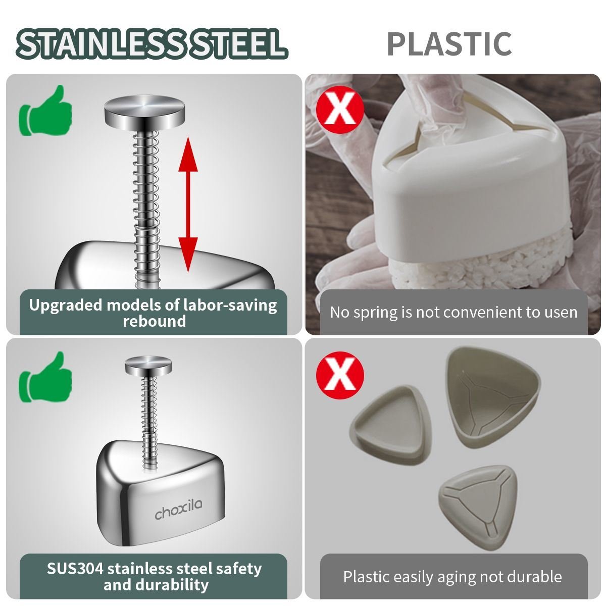 [Quality Guarantee]Choxila Is Committed To Providing Each Customer With The Best Quality Products And The Highest Standard Services.If The Rice Ball Maker Has Any Quality Problems; You Can Get Our Help Within 24 Hrs.