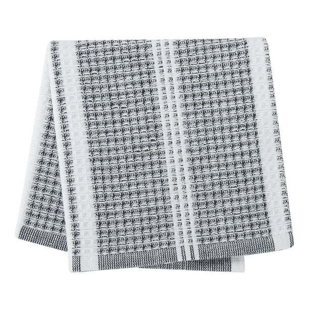 The Better Homes & Gardens 4-Piece Dish Cloth Set includes four kitchen towels that look great when they aren’t used to dry dishes or wipe down the counter. The flat dish towel is crafted with 80% cotton and 20% polyester while the waffle weave dish towel is made with 100% cotton. These woven kitchen towels are long-lasting and durable, as well as fast drying! The Better Homes & Gardens 4-Piece Dish Cloth Set is perfect for soaking up spills, drying dishes, and more. When they’re not in use, hang them neatly from an oven handle, drawer knob, or towel hook. The functional kitchen towel set comes in red, black, blue, silver, green, and yellow. Machine wash cold on delicate cycle with like colors and tumble dry on low. Do not bleach.