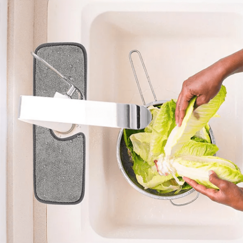 5.Super Absorbent & Quick Drying faucet protector backsplash guard. A specially engineered wicking mesh layered with absorbent microfiber cloth for the best quality sink mat faucet splash guard.