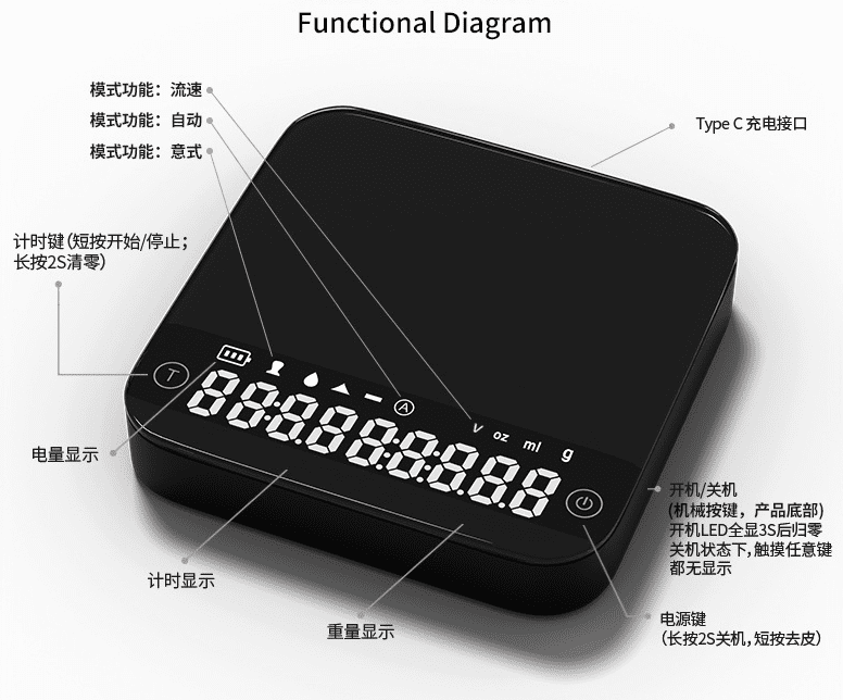 2.Product accuracy: 0.1g/0.005oz/0.1ml Unit of measurement: g / oz / lb / ml