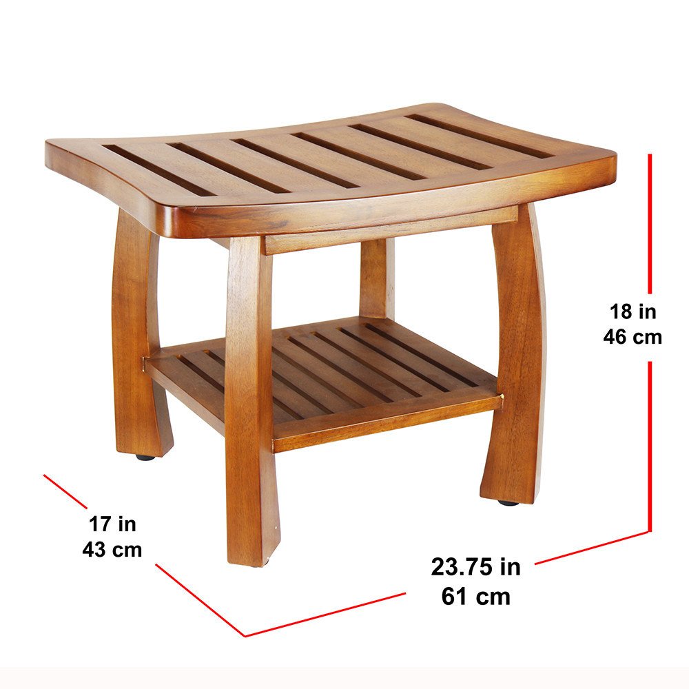 Create the perfect bed and bath setting with the Oceanstar Solid Wood Spa Bench with Storage Shelf. Beautifully crafted, the Oceanstar Spa Bench is multifunctional as it is ideal for storage or sitting. The bottom shelf is perfect for storing various bath products such as bottles and jars. The slats on the bench offer even air circulation while the curved design of the seating allows water to quickly flow downwards. Each leg features nonslip levelers if a little more elevation is needed. There are no tools or assembly required so you can save time and use the bench as soon as it arrives. Whether used in the shower or anywhere in the home, as a stool or storage, the Oceanstar Solid Wood Spa Shower Bench is a wonderful addition to your home.